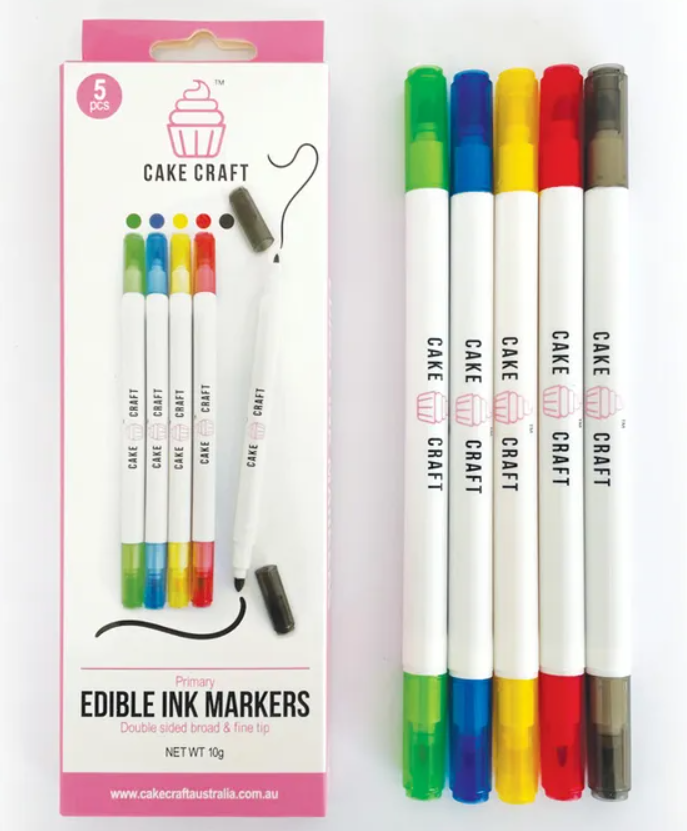 Unleash your edible creativity with the Cake Craft Edible Ink Markers – Primary Colours 5 Pack! Perfect for decorating cookies, cakes, cupcakes, and more, these vibrant, food-safe markers make it easy to draw, write, and outline directly onto fondant, royal icing, wafer paper, and other firm surfaces.