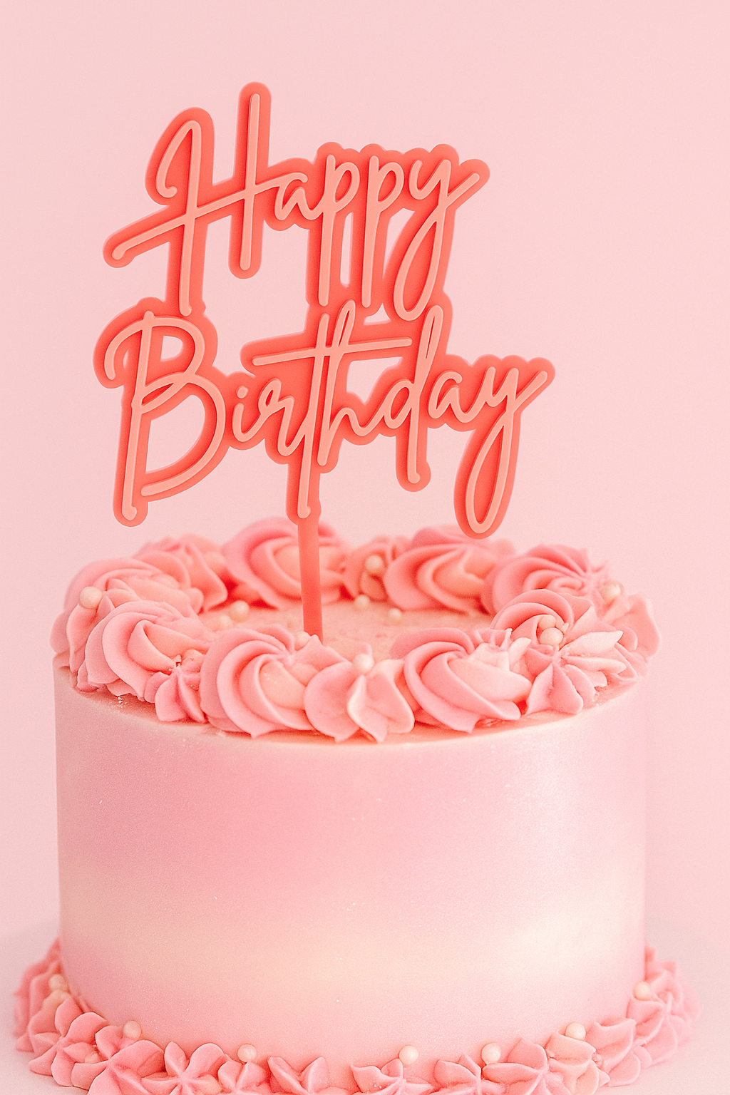 This vibrant topper features a double-layered design with bold pink tones, adding a fun and modern pop of colour to any birthday cake. Made from durable acrylic, it’s reusable and perfect for all ages—from kids’ parties to elegant pink-themed celebrations.